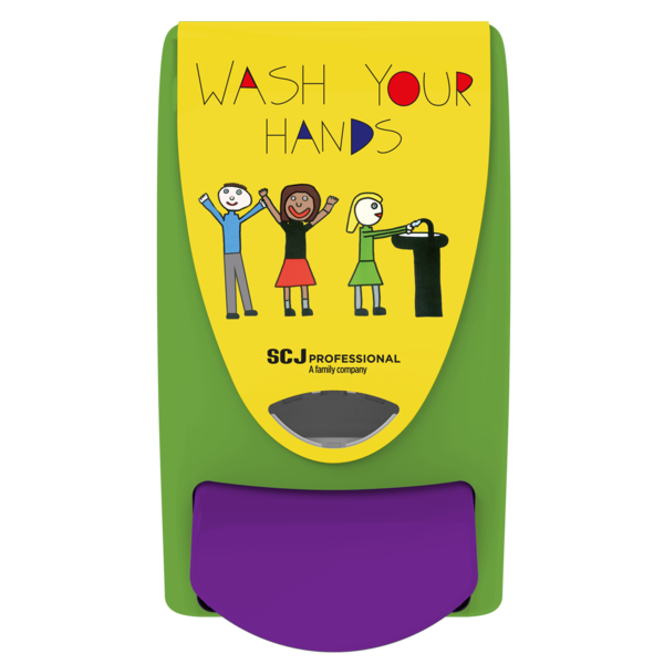 DEB Soap Dispenser - Green and Yellow with Kids Logo
