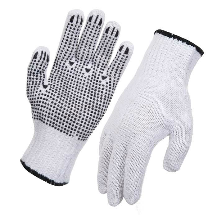 White Knitted Polycotton Glove - Single Sided Dots - Large (pr)