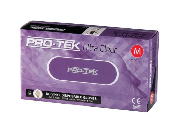 VINYL Gloves - CLEAR - Powder Free (pk100) - Medium