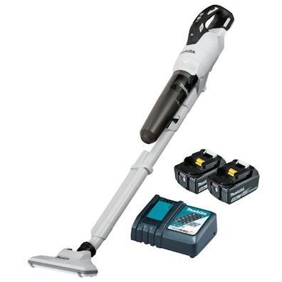18V Stick Vacuum, White Housing, High Performance Filter, including Transparent Black Cyclone Filter - with Single Port Charger & 2 x 5Ah Batteries.