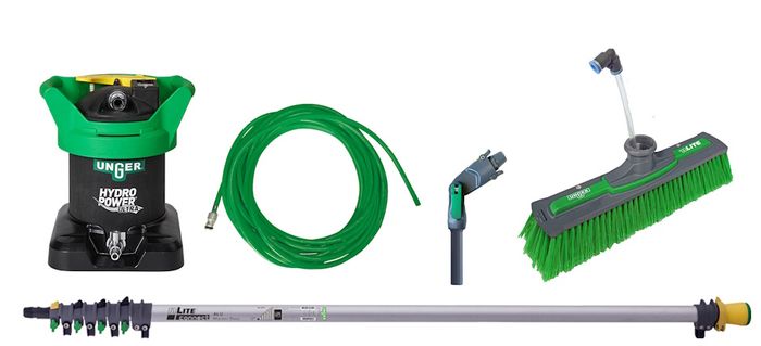 Unger Hydropower Pure Water Starter Kit, nLite Aluminium Master Pole - 6 m HydroPower Ultra Filter S nLite Power Brush 28cm - Flagged Bristles nLite Connect Angle Adapter S - 15cm nLite Duro Flex Hose - 25m