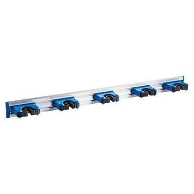 Aluminium Handle Holder - Wall Mountable Multi-Purpose Holder with 5 x Handle Holders & 5 x Hooks(Blue)